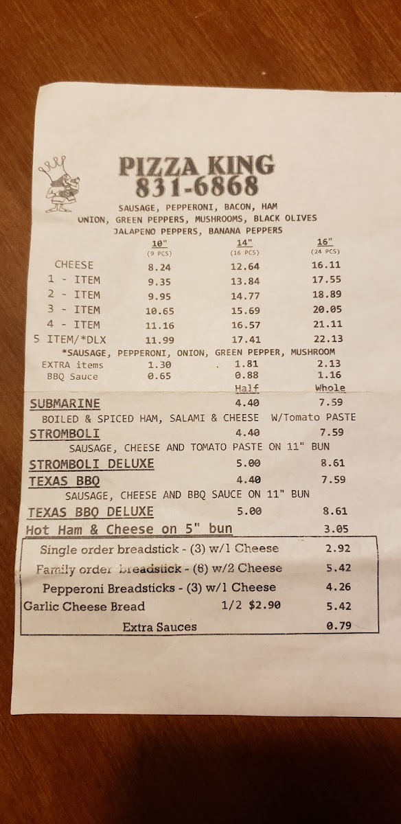Pizza King Of Mooresville Menu